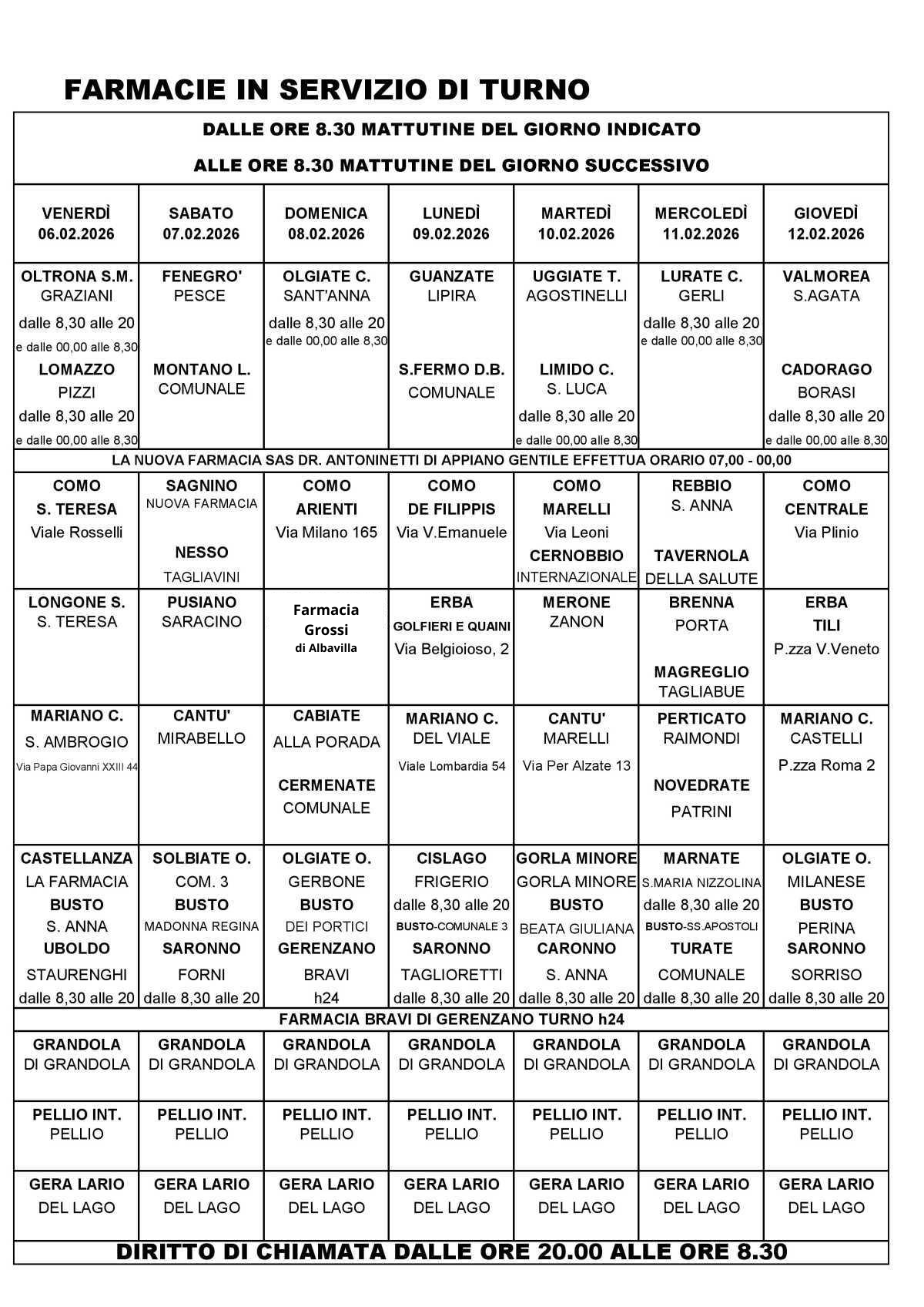 Da venerdì 06 febbraio 2026 a giovedì 12 febbraio 2026