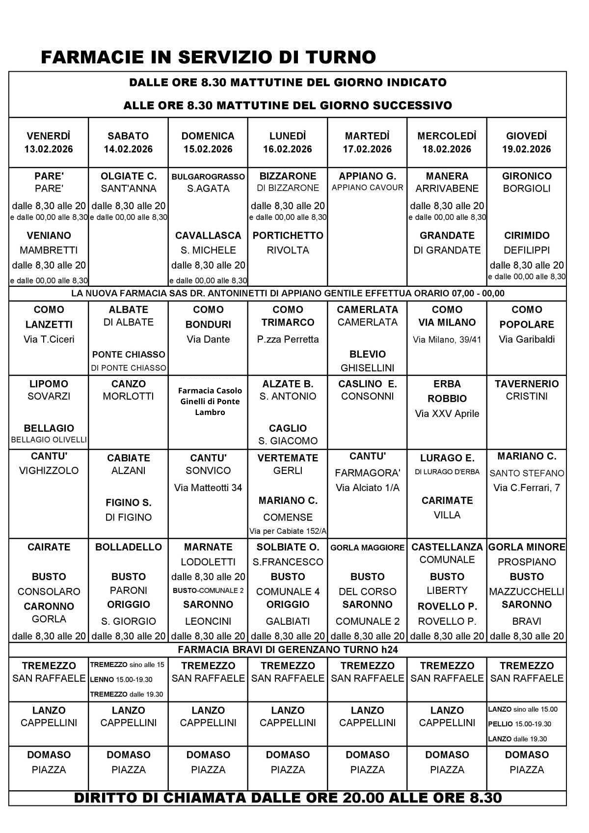 Da venerdì 13 febbraio 2026 a giovedì 19 febbraio 2026